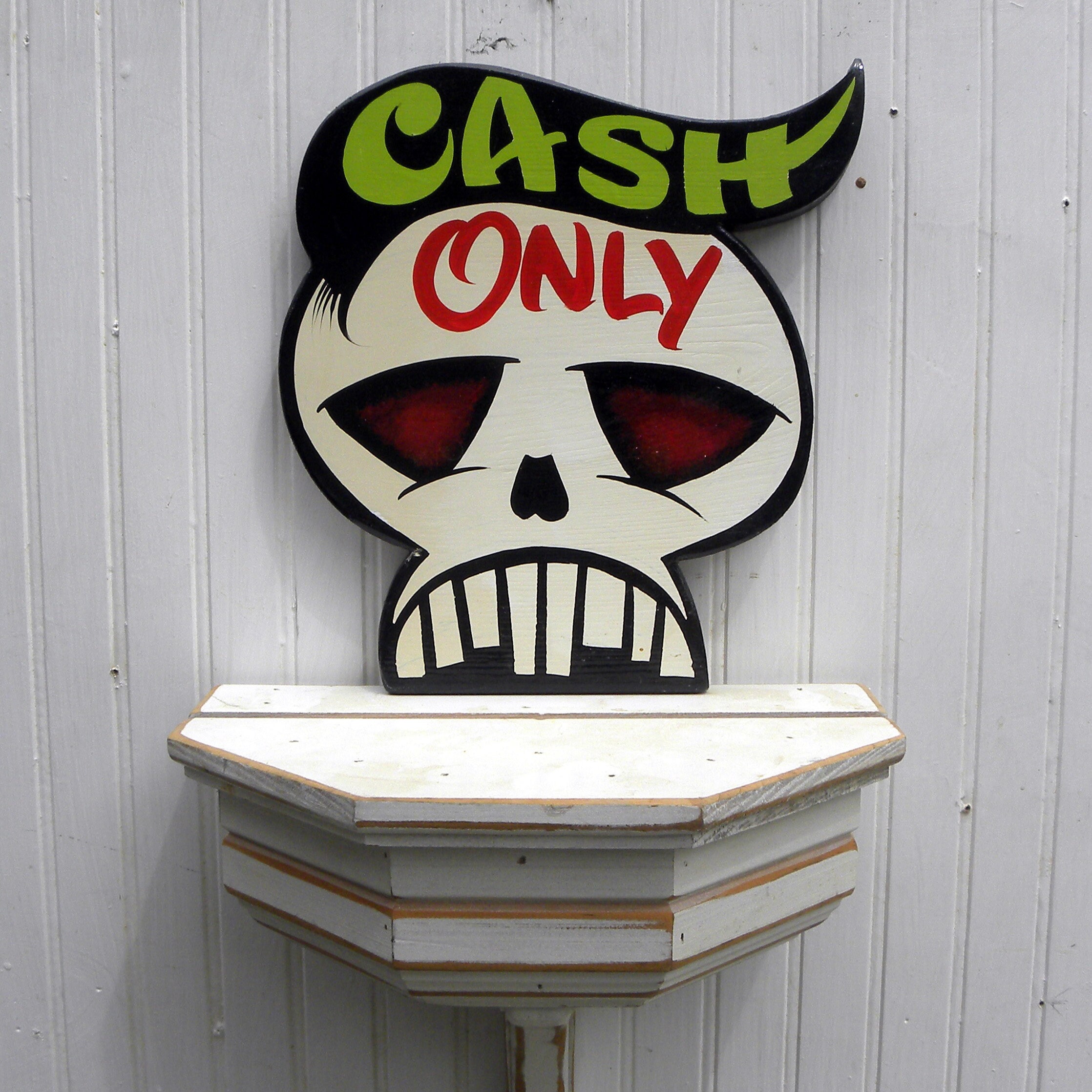 Cash Only Skull Sign Hand Painted Wooden Interior Exterior Etsy Uk